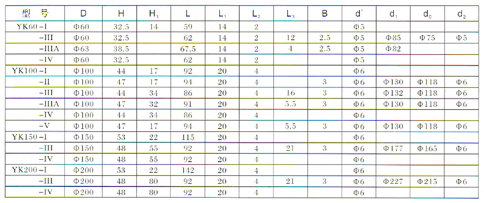 外形尺寸與YK系列抗振壓力表對應(yīng)規(guī)格基本相同。
